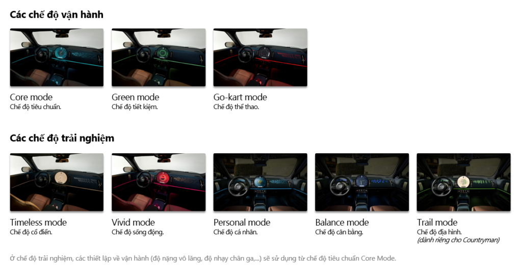 CÁC CHẾ ĐỘ VẬN HÀNH VÀ TRẢI NGHIỆM
